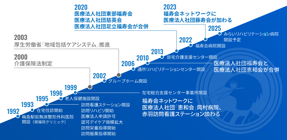 医療法人社団福寿会と医療法人社団恵和会が合併し、医療法人社団福寿会としてスタート