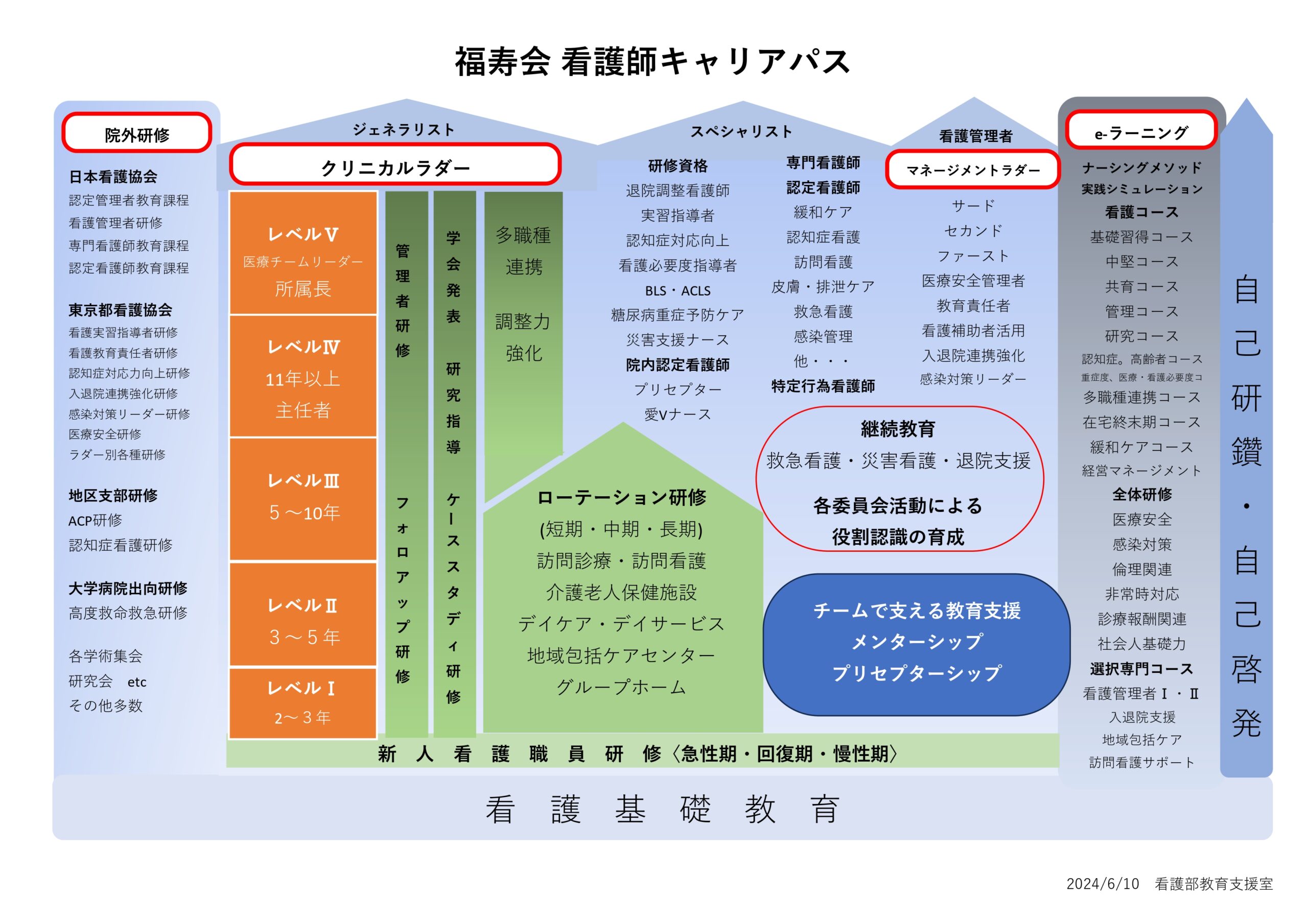 福寿会看護部の教育は「地域包括ケアシステムに対応できる看護師の育成」です。