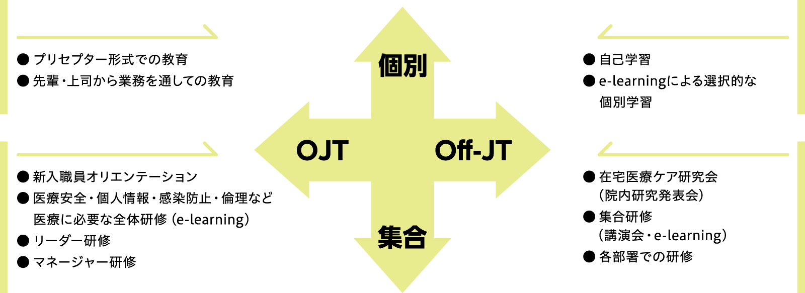 集合・個別学習とOJT・Off-JTを組み合わせ、効率的かつ効果的に学べます。
